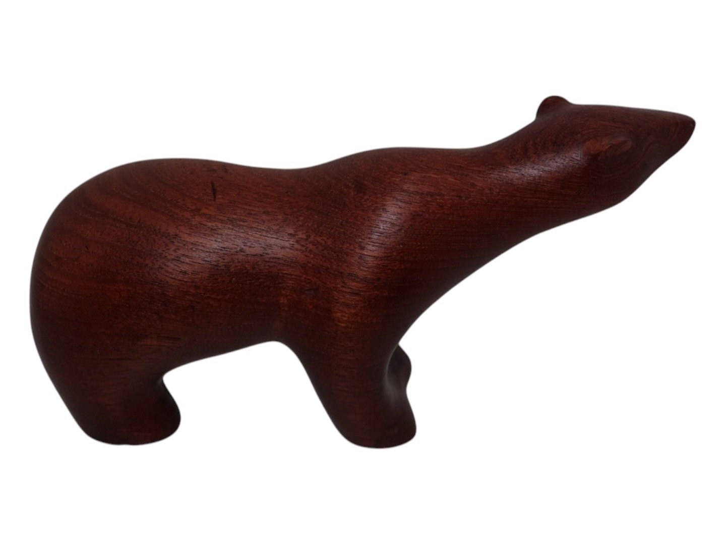 Beskrivelse: Arne Tjomsland fra Norge, isbjørn af teaktræ.