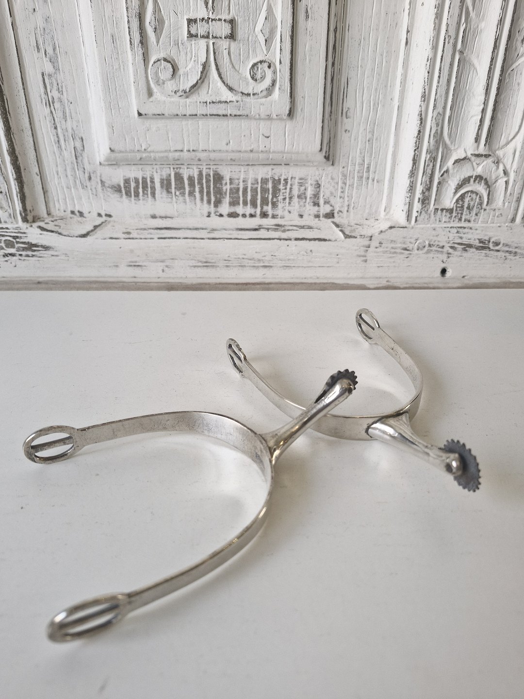 Beskrivelse: Par antikke ridesporer i sølv