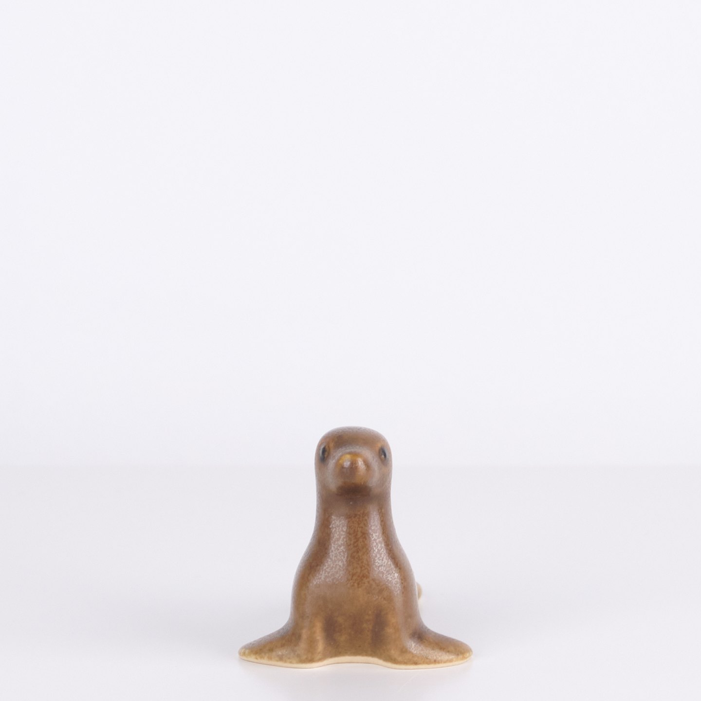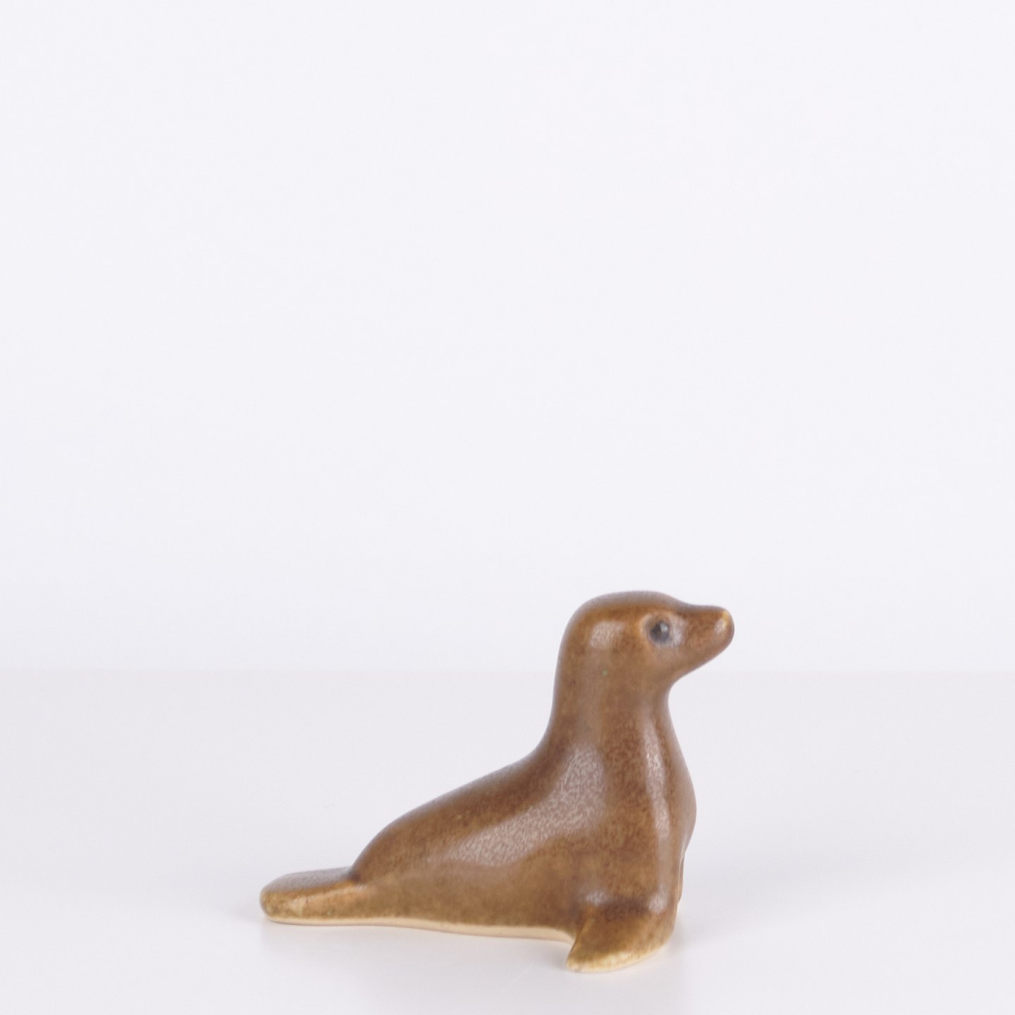 Beskrivelse: Sælfigur af Knud Basse udført i glaseret keramik. Figuren er fremstillet i Danmark i 1960’erne. Knud Basse er kendt for keramiske dyrefigurer med naturmotiver produceret i perioden.