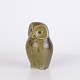 Beskrivelse: Uglefigur af Knud Basse udført i glaseret keramik med grønlige nuancer og mørke dekorationer.