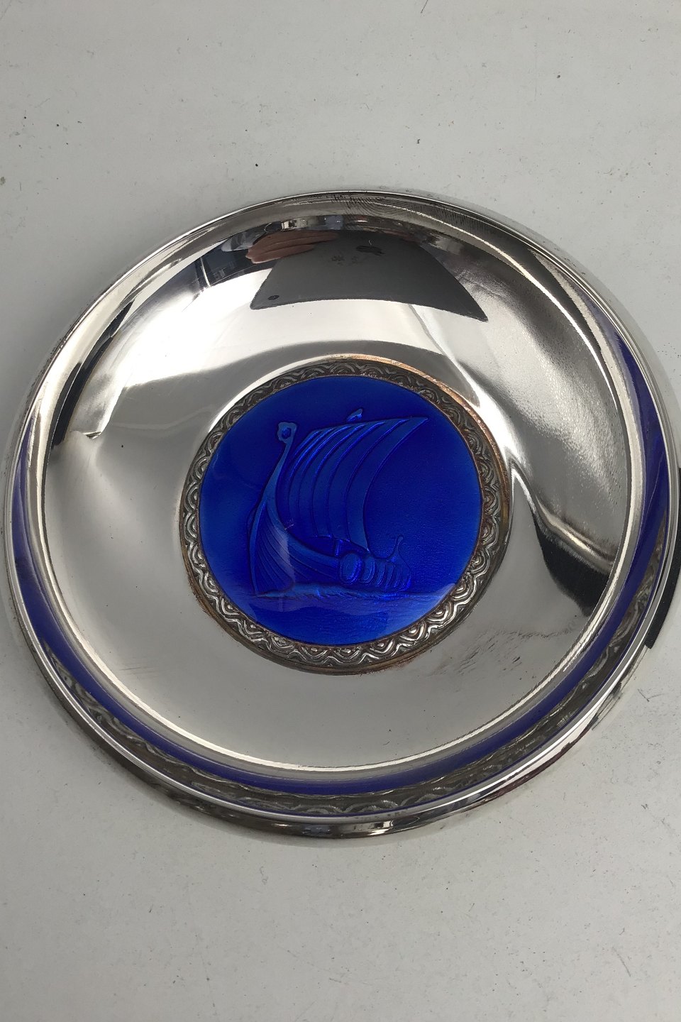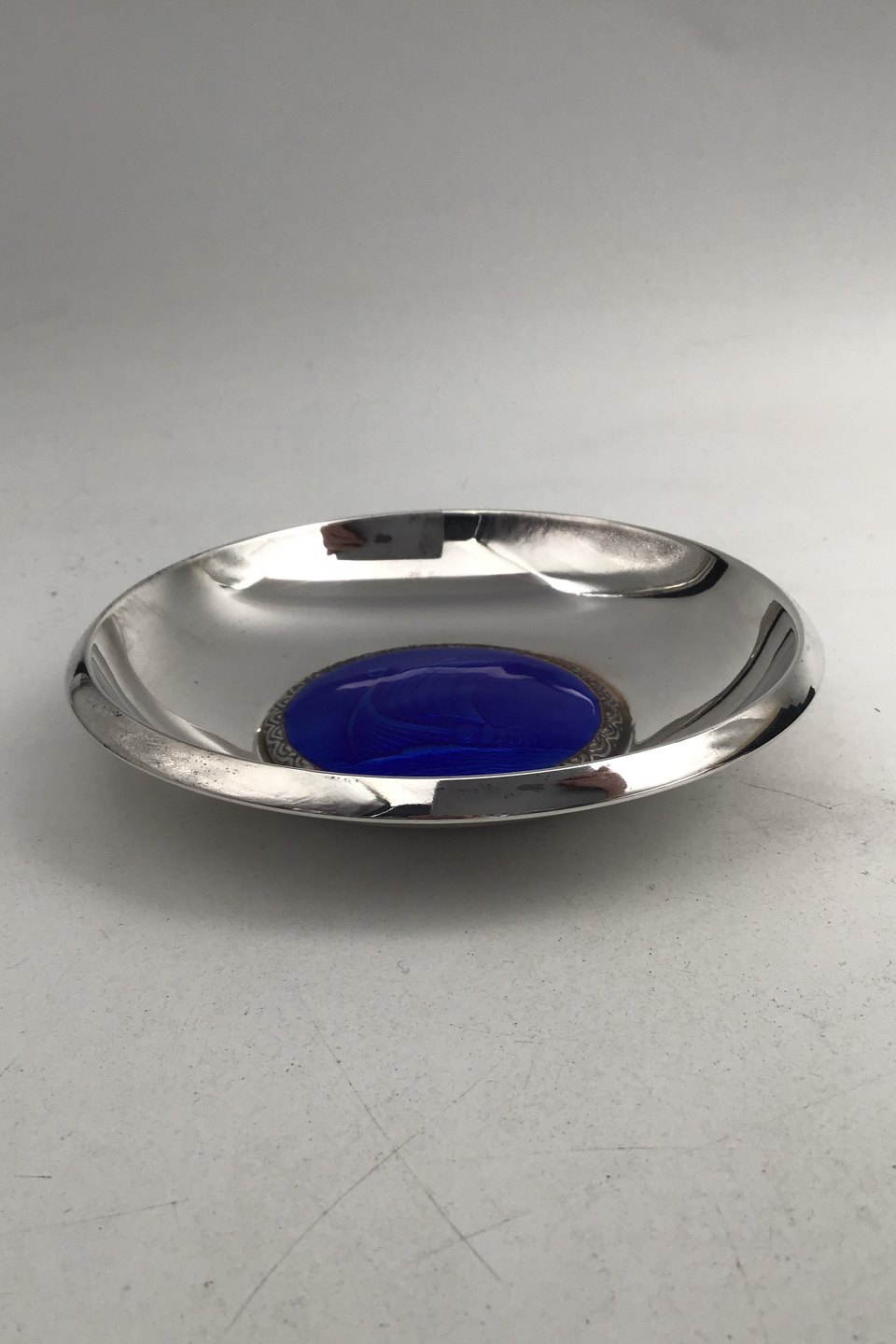 Beskrivelse: David Andersen Sølv Skål Emalje (Vikingeskib)