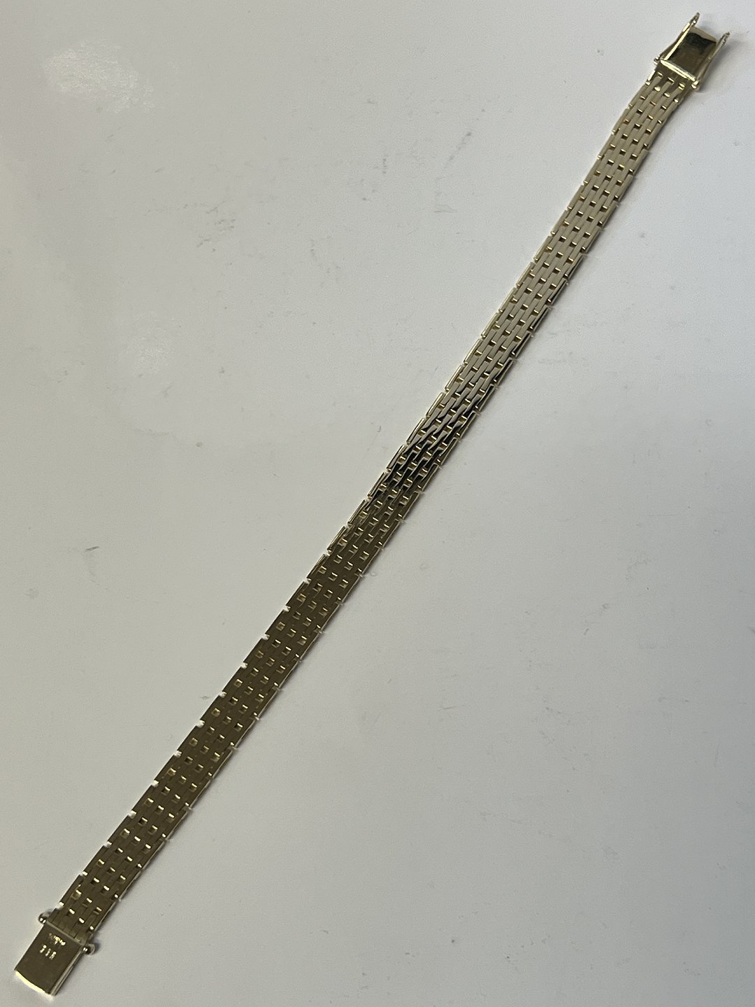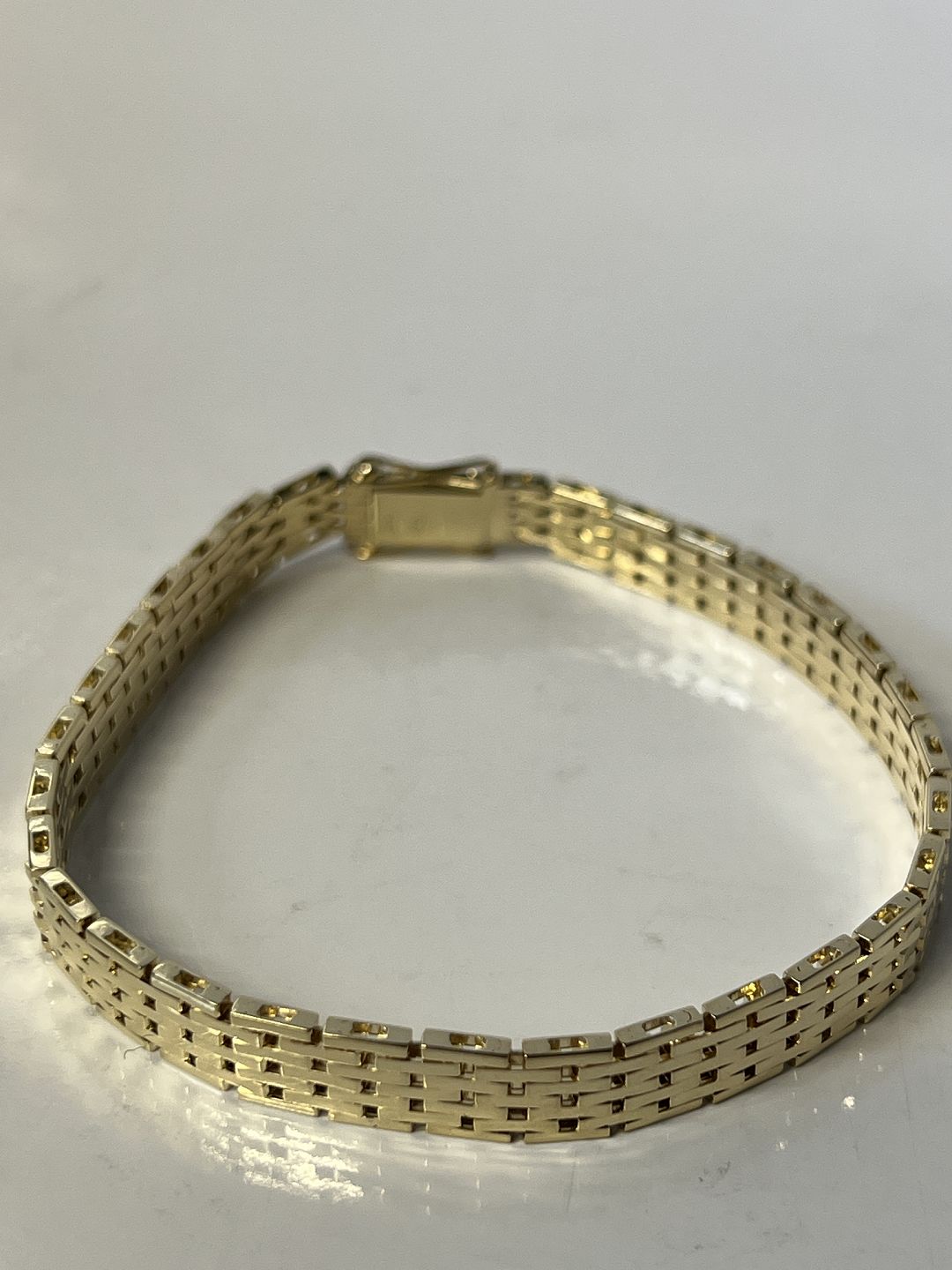 Beskrivelse: Mursten Armbånd 7 Rækker 14 Karat Guld.