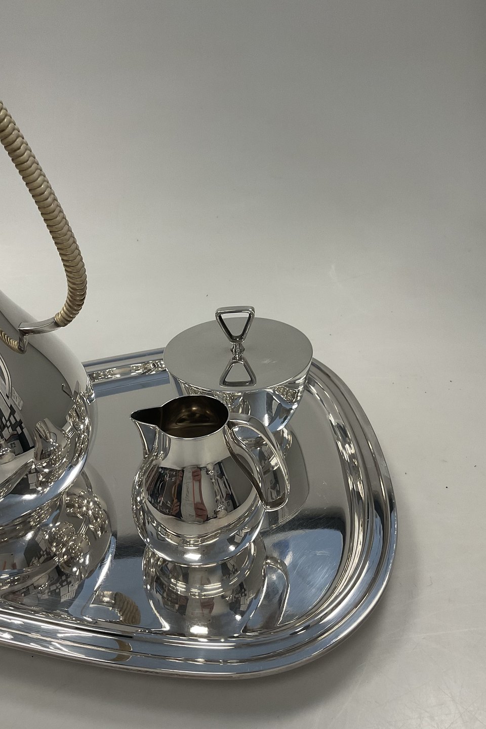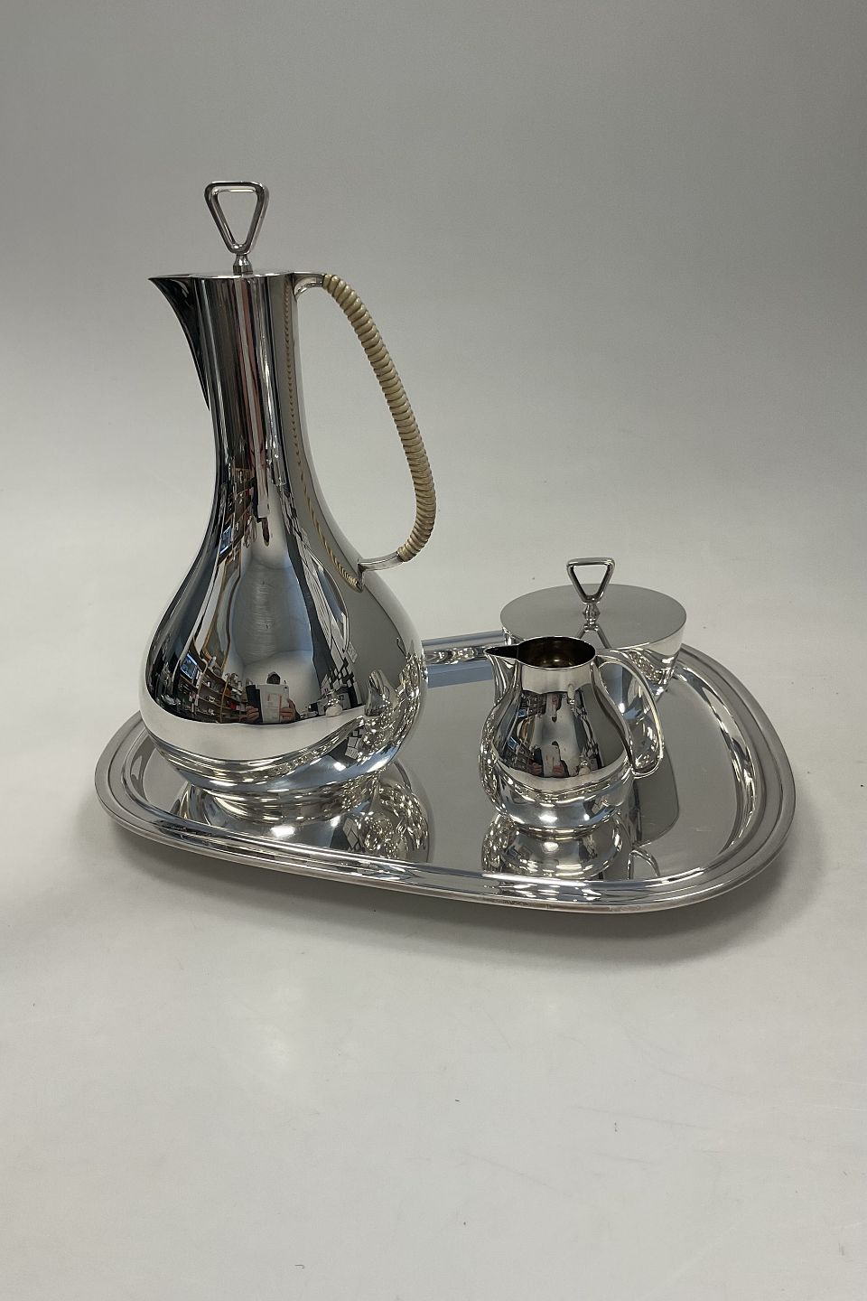 Georg Jensen Sterling Sølv Kaffesæt med bakke No 1015 Sigvard Bernadotte