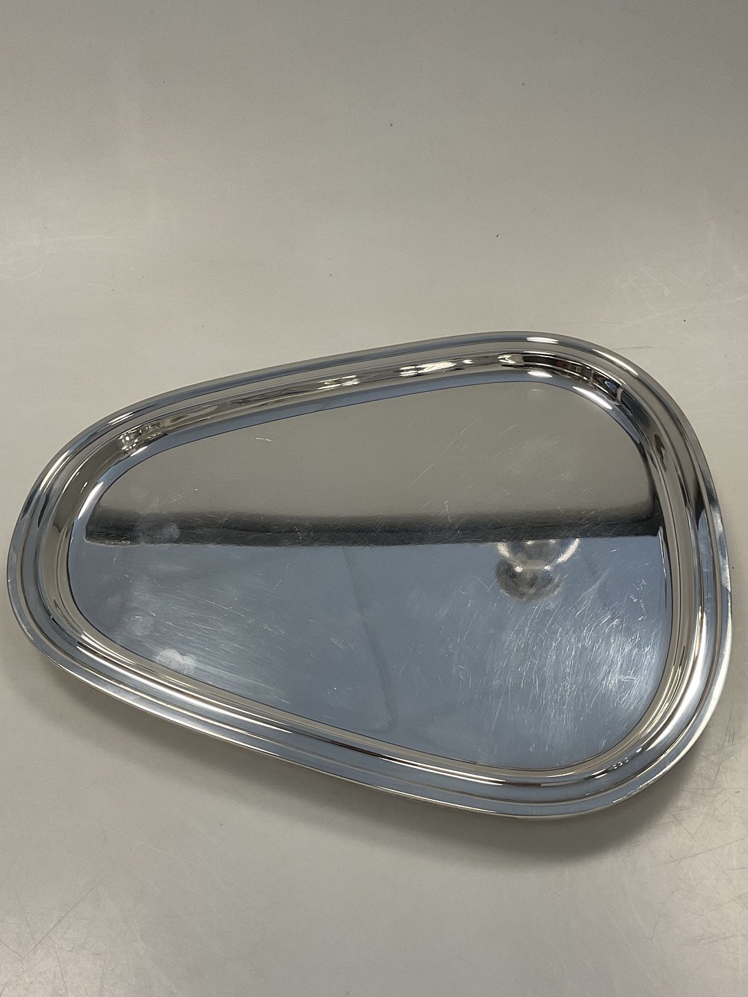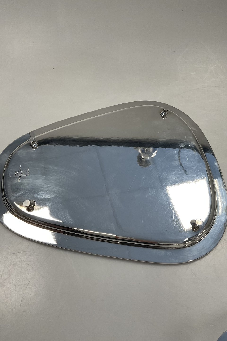 Beskrivelse: Georg Jensen Sterling Sølv Kaffesæt med bakkeNo 1015 Sigvard Bernadotte Måler Kaffekande H 23.5 cm / 9.25 inch, Sukkerskål H 7 cm / 2.75 inch, Flødekande H 7 cm / 2.75 inch, Bakke 28,5cm x 24,5cm / 11.22 inch x 9.65 inch