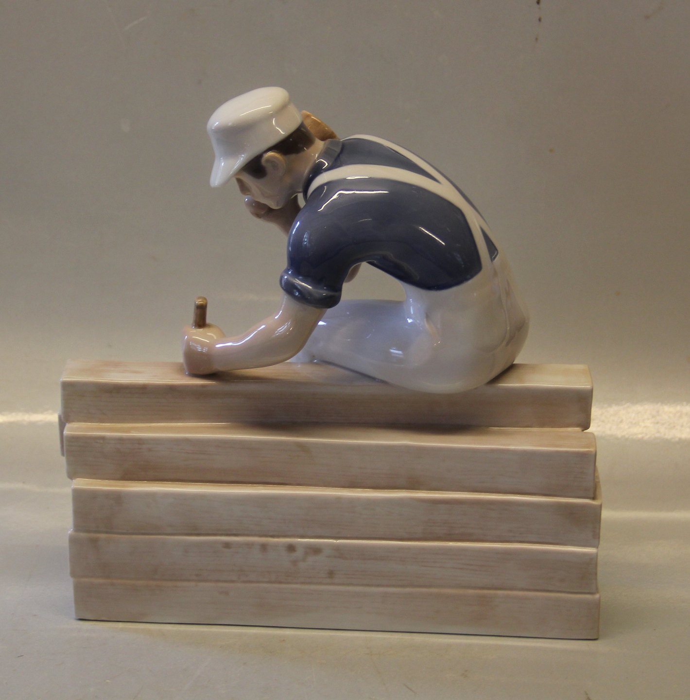 B&G figur 2339 Tømrer eller snedker sidende på stak tømmer
