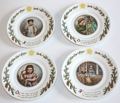 Beskrivelse: Peters Jul Platter fra den Kongelige Porcelænsfabrik. Motiver udført at Pietro Krohn og Johan Krohn. Måler 18,7cm